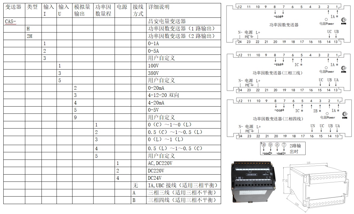 CAS系列功率變送器是將被測(cè)電流、電壓信號(hào),通過(guò)內(nèi)部CPU計(jì)算出有功功率、無(wú)功功率、功率因數(shù)等參量并輸出4-20mA等模擬量的設(shè)備。