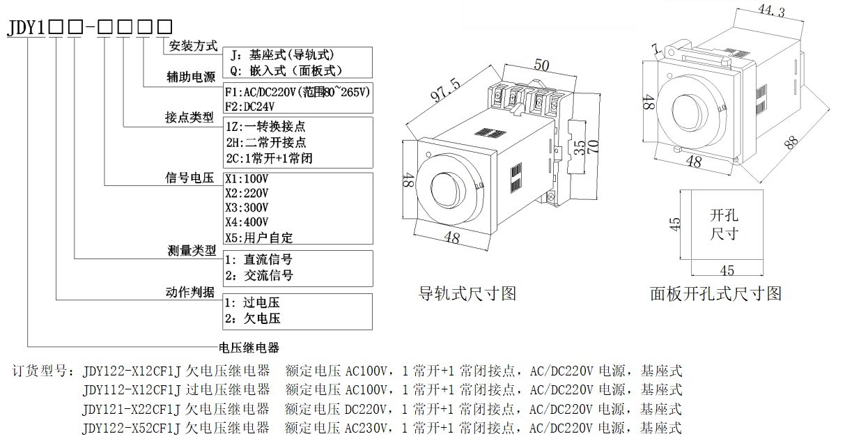 參數(shù):AC,DC;過壓,欠壓保護(hù)繼電器